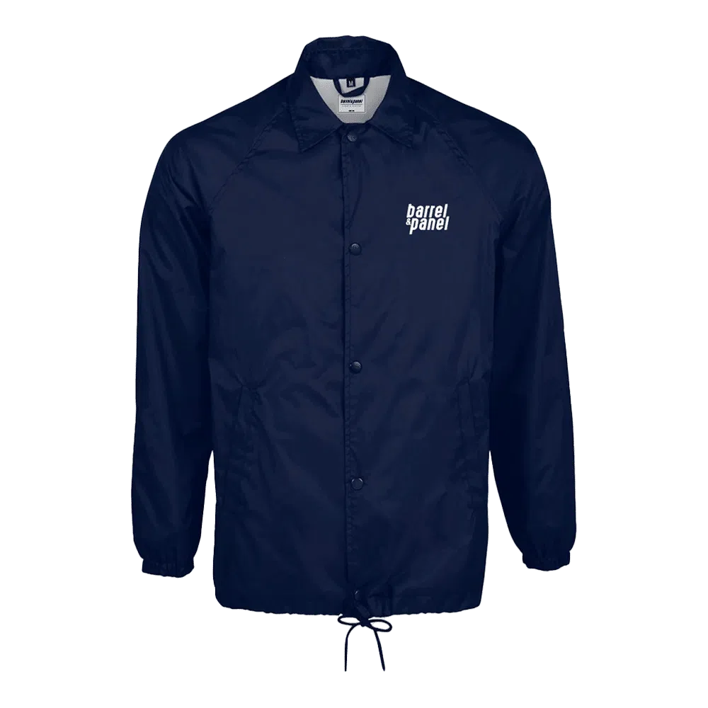 Veste "Coach Jacket" de Barrel and Panel, coupe classique, résistante et légère, avec logo imprimé sur la poitrine.