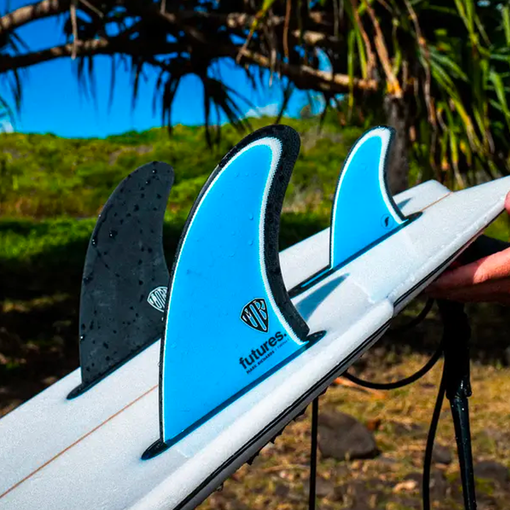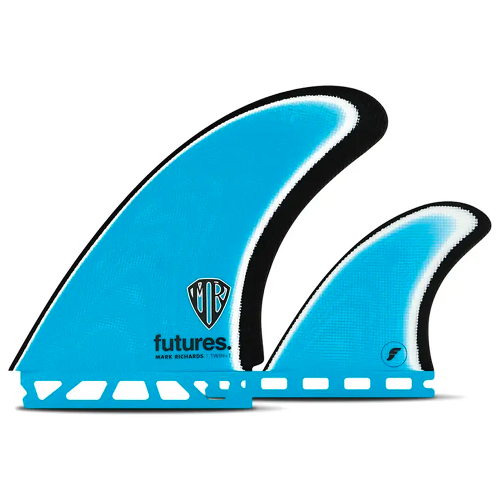 Le set Futures Mark Richards Twin‑1 Blue offre un mélange parfait de vitesse et de stabilité, grâce à des ailerons principaux performants et un trailer, idéal pour un surf fluide et engagé sur fish et shapes hybrides.