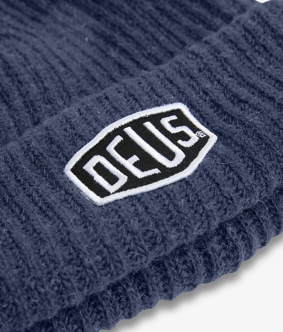 Le bonnet "Shield Beanie" de Deus Ex Machina, en teinte bleu marine, présente un logo brodé qui ajoute une signature de marque distinctive à cet essentiel d'hiver. Conçu pour offrir chaleur et style, c'est l'accessoire parfait pour les journées froides.