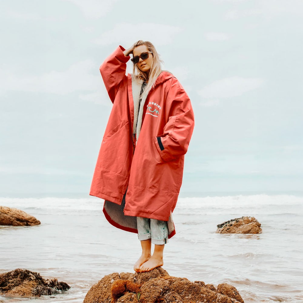 Avec sa teinte corail lumineuse et son design pensé pour les femmes actives, cette robe de changement est l’accessoire essentiel pour profiter de l’extérieur en tout confort, toute l’année.