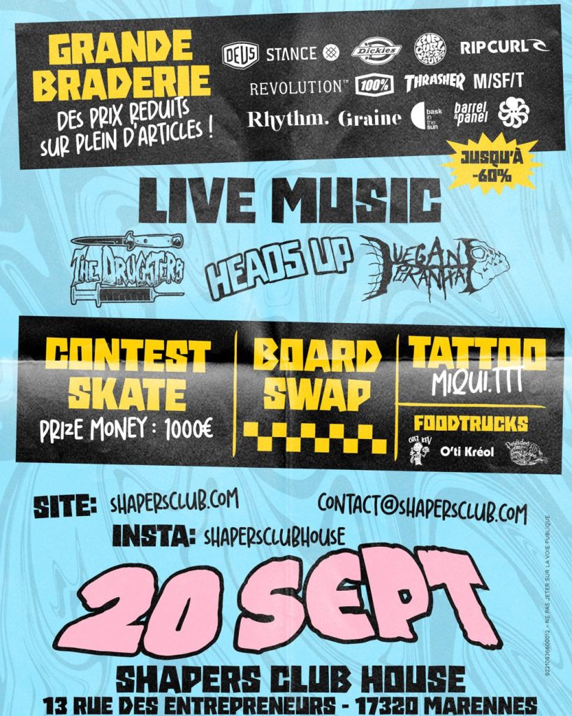 Whether you're on site to enjoy the event or at a distance, the Shapers Club remains your ally in finding gear, clothing and accessories that breathe surf and skate culture.