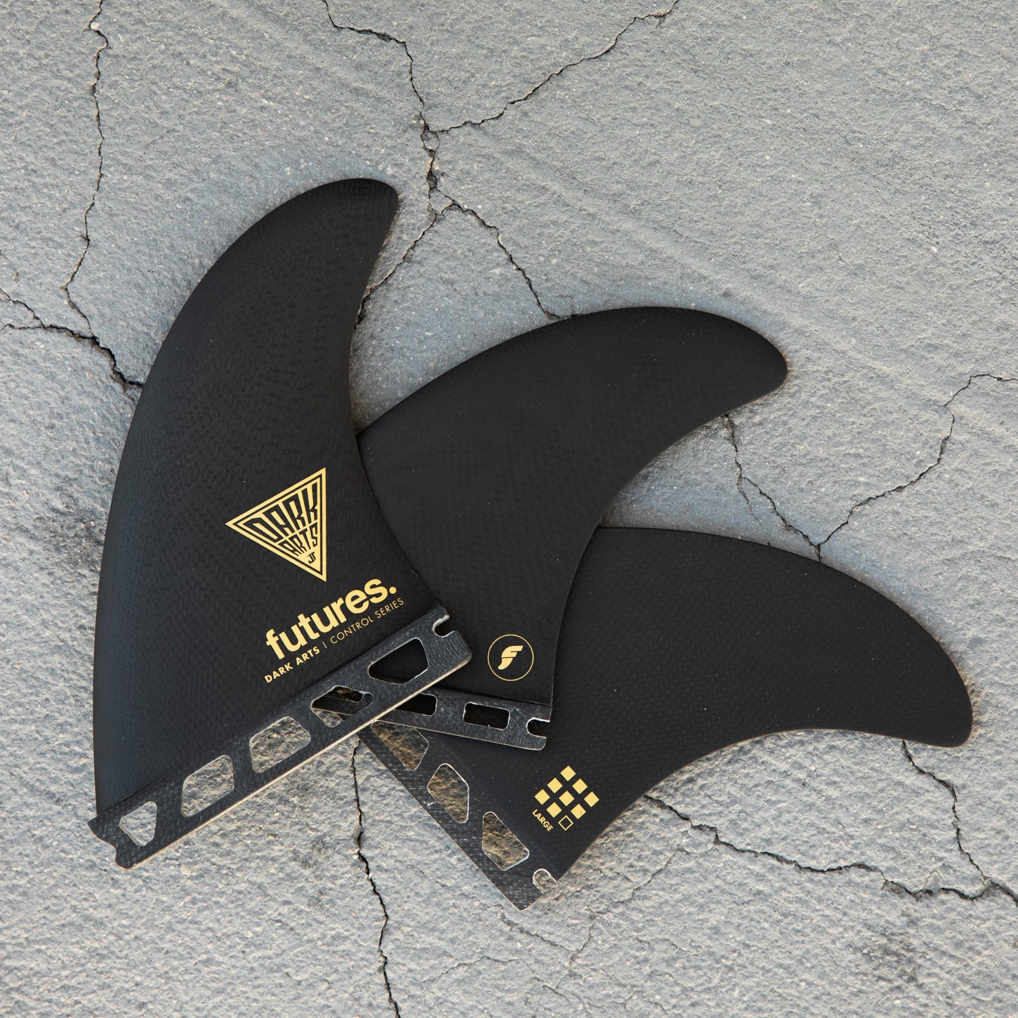Speed Control with Easy Release Designed for surfers looking to control their speed without sacrificing the ability to perform dynamic manoeuvres, the Dark Arts thruster set is perfect for riding demanding waves, allowing a smooth transition between tight control and bold releases.