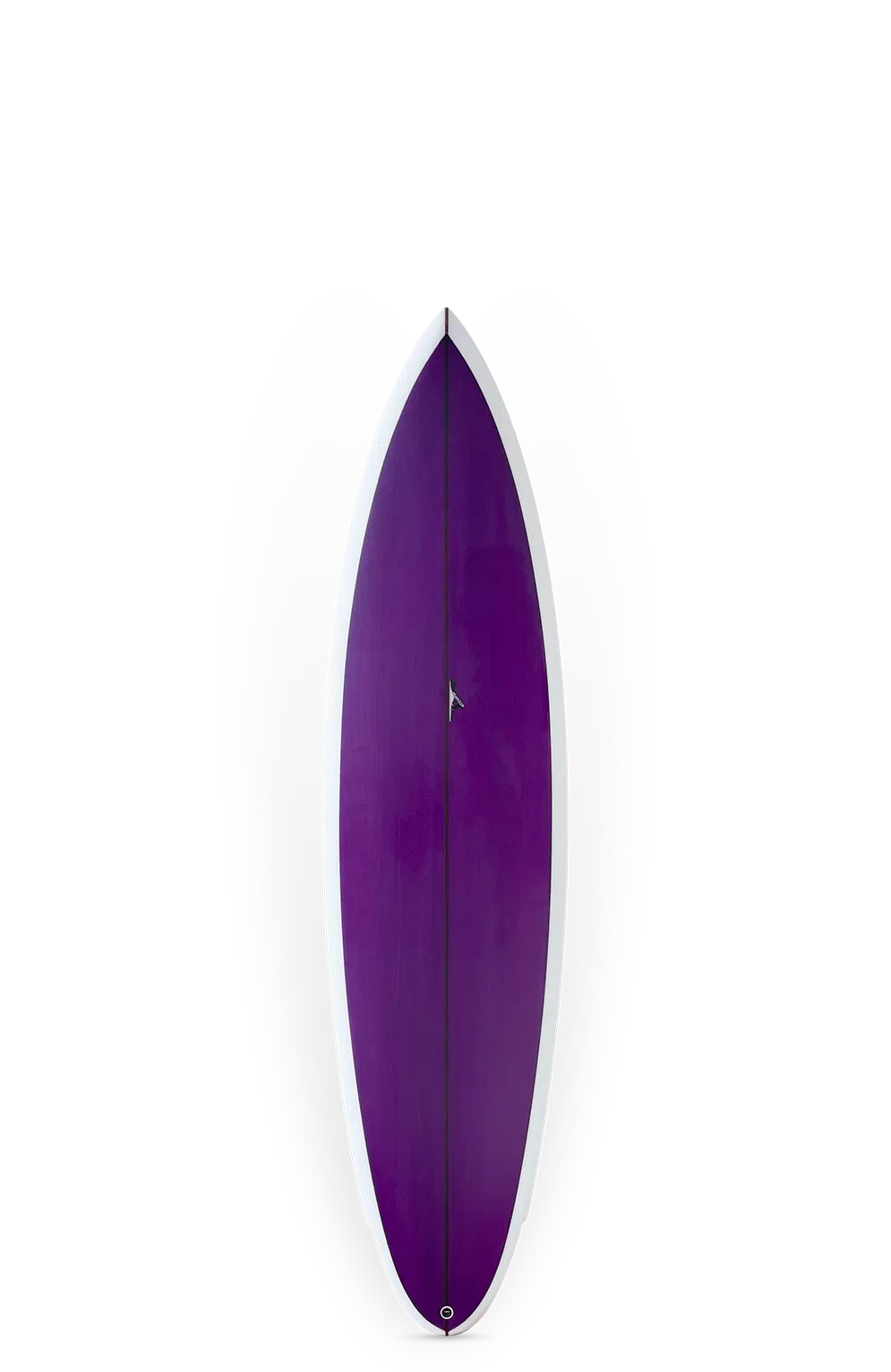 Shapers-Club- Une élégante planche de surf violette MV1 de Thomas Surfboards, dotée d'un bord blanc et d'un nez pointu, est présentée sur un fond clair. Mesurant 7'0x21x2 7/8, elle est idéale pour les surfeurs en quête de style et de performance. -surfshop-surfboard